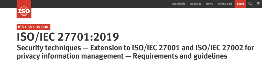 ISO has launched ISO/IEC 27701 Security Techniques as an extension to ISO/IEC 27001 and ISO/IEC 27002 for privacy information management systems.