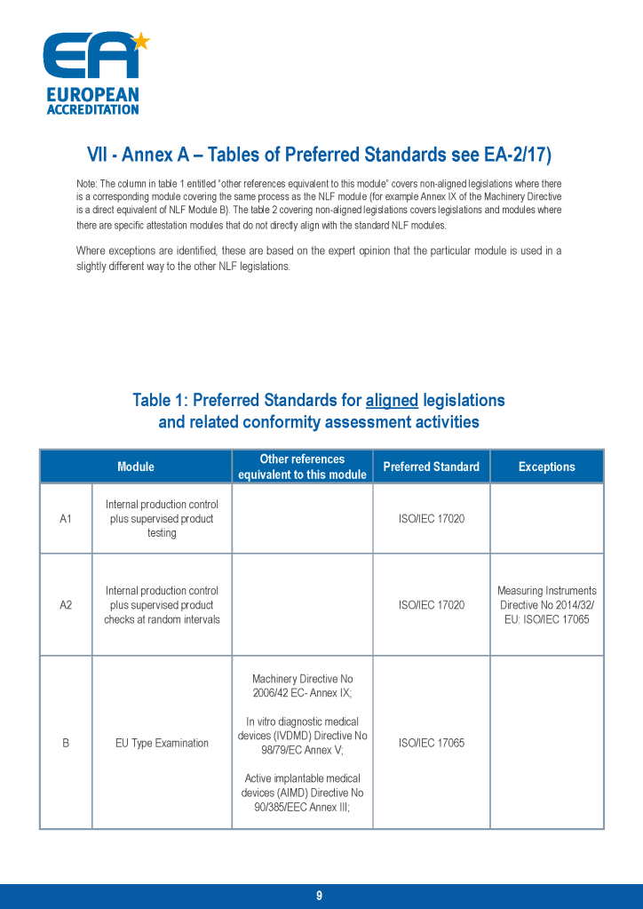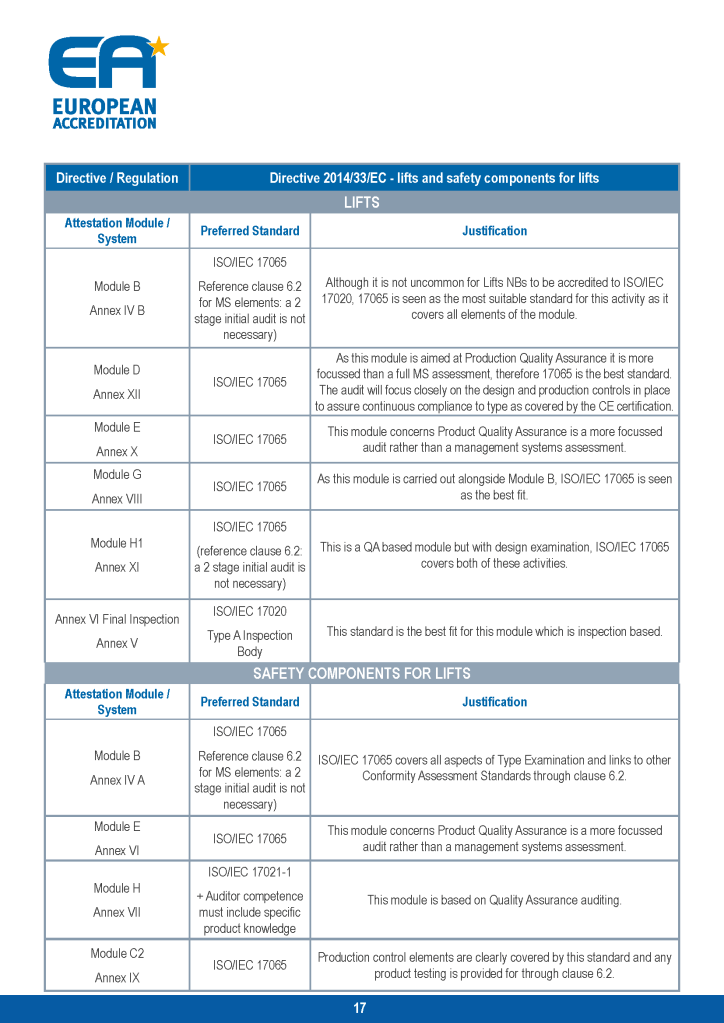 The application of the preferred harmonized standard will be made mandatory for NABs, unless the national (notifying) authority requires specifically the application of another harmonized standard for accreditation.