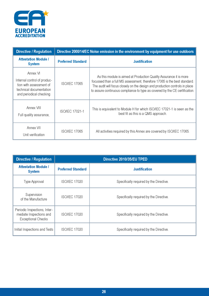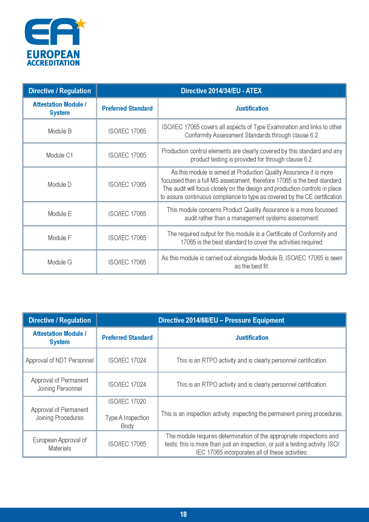 - EN ISO/IEC 17020 Conformity assessment – Requirements for the operation of various types of bodies performing inspection