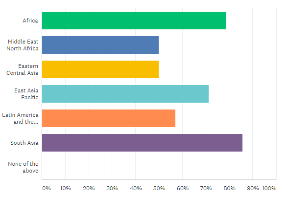 QI programs are active in 143 countries in all regions: South Asia receives (86%) of the support, Africa (79%), East Asia Pacific (71%), Latin America and the Caribbean (57%), Middle East North Africa (50%) and Eastern Central Asia (50%).