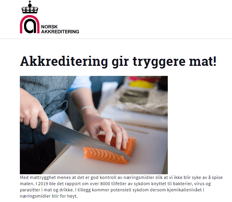 On its website, NA published an interview in which the Director of Norwegian Accreditation and the Director of the Norwegian Food Safety Authority discussed the importance of food safety and accreditation. The articles are available in Norwegian here and here.