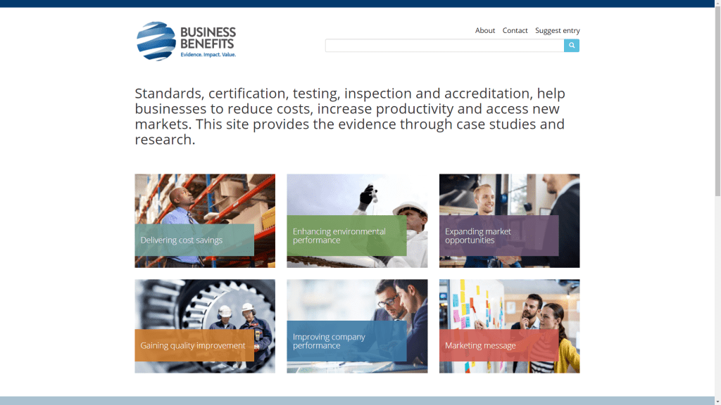 Business Benefits (www.business-benefits.org) provides tangible financial data regarding the benefits that businesses have achieved through the use of QI services. Case studies, research and supporting materials are organized into the categories of delivering cost savings, enhancing environmental performance, marketing message, gaining quality improvement, expanding market opportunities and improving company performance.