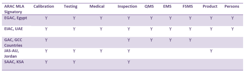 Following the latest ARAC MLA Group decision, ARAC has five MLA signatories recognized for the following: