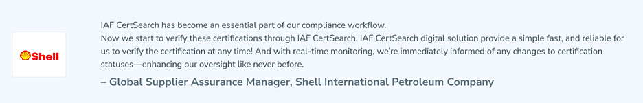 Now, the industry provides one central API through IAF CertSearch. A single connection gives corporations access to verified certification data from across the entire global network removing duplication, reducing cost, and ensuring consistency.